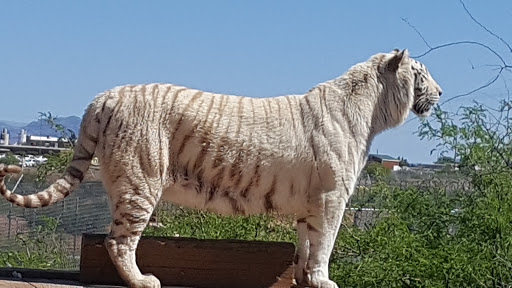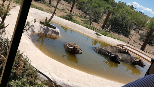 Out of Africa is a different kind of zoo but if you call it a zoo they will get upset because its not a zoo its a Wildlife Park and I would suggest bringing your walking shoes and planning on getting a little dirty because its all in the dirt the walk pass or actually driving pathways and the shuttles come quite frequently so if you get halfway through it and you like I need a ride you can get a shuttle that will pick you up and then still tell you all the animals that youre not going to be able to stop and stare at you can still see most of the animals the enclosures arent super huge to where you cant see any of the animals plus the animals are encouraged to kind of hang out by where the guests are anyways we saw the tiger show where are the tigers jump into the water and they chased the people around super awesome I would totally totally suggest it their snack food there was amazing a little pricey but that goes without saying any park or amusement park or Wildlife Park or Zoo has pricey food so we were pretty much expecting it but other than that it was an awesome adventure and I would totally suggest taking the bus ride through the exhibit that you get a free ticket for it when you buy your tickets to get in its super awesome and the drivers are hilarious and fun and you get to feed a giraffe I mean that is just awesome and if youre brave enough you can do the giraffe kiss where you put the draft food in your mouth and they literally come and take it out of your mouth it is pretty interesting its pretty interesting but whether you live in Arizona youre visiting Arizona or youre looking at visiting Arizona you should look into visiting the Out of Africa wildlife Park you will not be disappointed just make sure you bring water just like anything else in Arizona