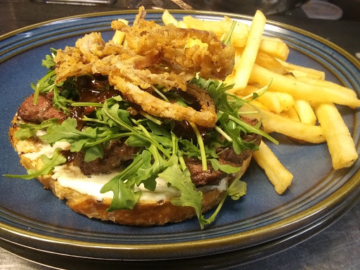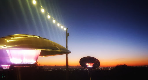 Food on patio at sunset. I am a hiker not a golfer. Bogies Restaurant nice for small party. Grill inside or on patio great food and daily specials. Good wine and beer selection. Many hiking trails nearby both sides of Usery Mountain. Life is good at Las Sendas. Southern part has 2 grade schools on Public one "Charter."