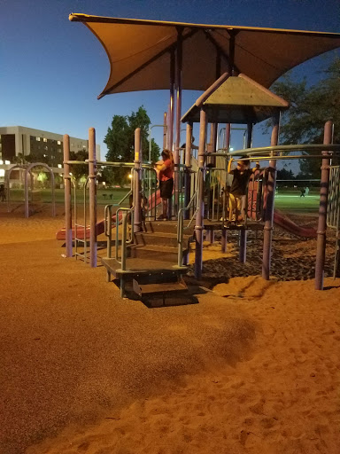 One of the saddest parks I have been to. The soccer fields were closed and the playground is way in the back. The parking lot had no places to park. The park itself is rather large, but its weird that its completely surrounded by an 8 foot open bar fence. I guess you can jog and walk your dog, which plenty of people were doing.