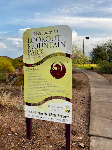 If youre thinking about visiting this park, stop thinking and go. Wake someone special up with you and go early in the morning to watch the sunrise you will not be disappointed. Directions: This Hidden Gem is located on the southeast end of Lookout Mountain If youre going to this park from Cave Creek Road turn when you get to Hearn Rd. Going westbound now on Hearn Rd. youll come to 20th Place take a left onto 20th Place you should be heading south bound until N 18th Street turn right and go west again until you see the Park on your right you cannot miss it. Amenities: This park obviously sits at the bottom of Lookout Mountain so much like its neighbor to the North Buffalo Ridge Park, LMp offers quite a bit of light hiking. Along with the Hiking there is a lot of parking, clean and well-kept restrooms, tons of park benches for parties and two different modern playgrounds for the kids. Throw in Volley Ball Pits with nets for the adults, and two tennis courts to add a touch of class and all you need is a Mountain and you have a perfect park.
