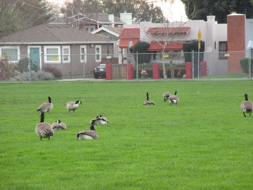 This park is the center of our neighborhoods social life. Its a big green rectangle full of kids playing sports and hopping around the playground, adults jogging and boxing and playing soccer. The Berkeley Hills rise up in the distance. We love it.