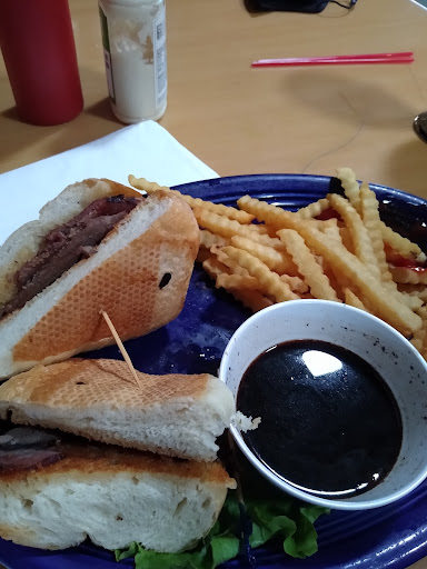 Outside eating patio but dont bring your pets as they are not allowed, even on the outside patio.
