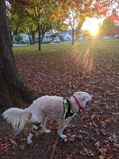 This park is fairly popular. It is great for families, kids, dogs, and adults. Its playground is kept clean and friendly; the sidewalk around it marked with 1/4 mile markings makes it perfect for those wishing to take a quick mile walk at lunch or in the morning; its very dog friendly, providing plenty of open grass space as well as doggie bags and trash cans to keep things clean; public bathrooms are also provided; and picnic tables are both shaded and sunny, with spots to grill nearby.