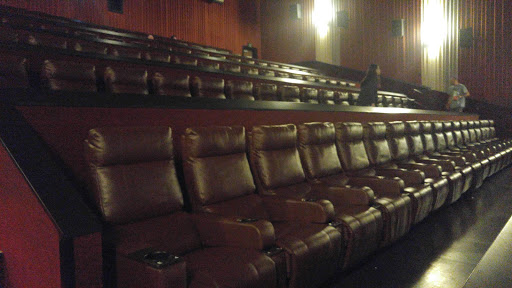 Update: They have reclining seats in every theater now and you get to pick your seat ahead of time. Feels super luxurious and less stressful. Now I just come an hour early, get my tickets, pick my seats, and go to a happy hour within walking distance because I know my seats are guaranteed. Great theater with a large food area with tons of choices. The ticket taker was probably the nicest movie theater employee Ive ever met. The screens and sound were great too. Parking can get tight in the free parking area, though.