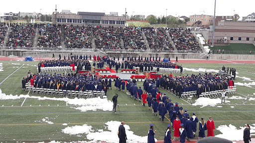 Great stadium for high school events. Plenty of seating and always has concessions. Have to watch out for the grass turf. It has staples holding the turf down that could cause injury.