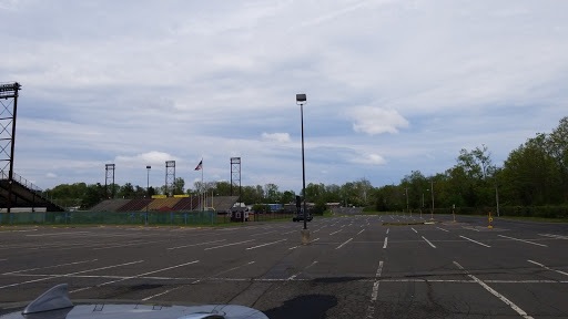 Nice stands with seatbacks built-in in the middle. Great surface and lots of parking.