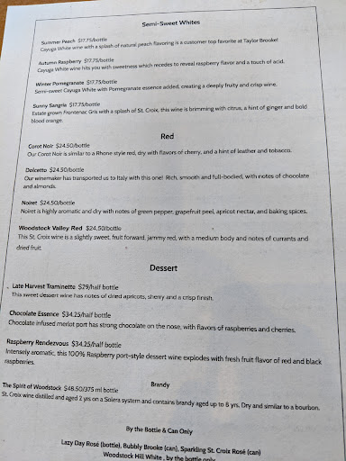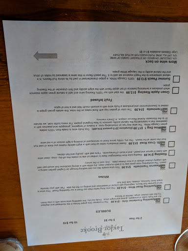 We recently spent a Sunday afternoon at Taylor Brooke and we both agree it is one of the best wineries in CT. The staff couldn’t be friendlier and they truly make you feel welcomed. Their prices for wine tasting are very reasonable and, hands-down, the best value compared to others in the state. You can choose 2 wines to taste complimentary, 8 wines for $5.50 or all 12 for $8.50 (if you want to buy the glass, it costs an additional $3.00). They offer more white wines than red but all are amazing, including the dessert wines (Chocolate Essence, which is a port, is incredible). They encourage you to bring snacks or a picnic lunch so we bought a bottle of Woodstock Hill White to enjoy there with our picnic and a bottle of Wine Dog to take home. Our host was extremely educated and informative about all the wines we sampled. She was even kind enough to give us two glasses to take outside with our bottle of wine (we returned them upon leaving since we did not wish to purchase). There are two separate seating areas, one has tables under a pergola in front of the winery and the other is in a more shaded enclosed area to the side of the building, including additional picnic tables randomly placed in the vineyard. They invite you to take a self-guided tour around the vineyard and check out the different types of grapes they use. We enjoyed our visit so much, we will definitely return with family and friends to this beautiful, quiet part of the state.