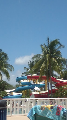 A refreshing spot to take the family for summer. The lazy river is pretty long given the overall size of the park. The play set is really great. There are also a few waterslides. This park is geared towards older kids, though. If you only have tots you might consider other alternatives. The price is fair for both admission and food. If you wish to eat or drink anything not purchased inside then there are picnic benches outside as there is a strictly enforced no food or drink policy. Also, the buildings could use some remodeling. The biggest reason I have it a four star not five star review is because something needs to be done about the floors within the pools. They are very prickly and tore through the skin on the pads of my toes. I understand that there needs to be some sort of texture to be able to get a grip as you are walking, but this the worst pool floor surface I have encountered.
