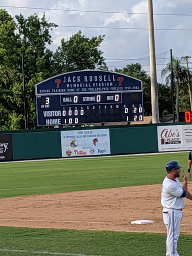 The Google description as to what this stadium is currently used for is slightly incorrect. It was the former Spring Training home of the Philadelphia Phillies, a Major League team. And it was also used by one of their Minor League (Professional Baseball) affiliates, the Clearwater Phillies. It is no longer used by either, (nor by any Minor League Baseball team any longer) as both of those Phillies teams play in a newer nearby stadium. Jack Russell Stadium is currently used by high school and college level players for training and for games.