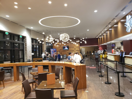 The theater is really nice, and I hope it makes it because its nice to have another local theater. We went twice so far. The first time we sat in the non-luxury section. We ordered one meal to split between two people because it was so expensive. It was just over $20 for one order of chicken fingers, fries and a large coke. Way too expensive, in my opinion. Especially because it wasnt delicious. It was just so-so. In this section, you order and take your food to your seat. They gave me a pager, but it was kind of a pain because I waited for a while…then as soon as I got to my seat, it went off and I had to go back down to get it…and go back up into a dark theater carrying two cumbersome containers and a large Coke. Today we sat on the luxury side, where a kind employee showed us how we could push the call button and someone would come take our order. The reclining seats were so comfortable! During the previews, we decided to order popcorn, just for the fun experience of ordering from our seats. We waited. And waited. And waited. Another employee tended to the the three people in front of us (nobody else was in the theater…just us and them). But nobody came to us. At least half way through the movie, when I had pretty much given up on the idea of anyone serving us, that kind employee finally came to take our order. Im not sure what took so long…it certainly wasnt busy with only five of us in the theater (and the other theaters were not busy either). Its a fun concept…The theater is nice...But to be honest, I dont think its worth so much extra money. The same movie was playing at the same time for $8.50 at Downtown at the Gardens. This early showing was $14.75 (and later showings are even more $$). So even though its a nice, comfortable theater, youre paying considerably more for the ticket, and if you buy food, youre paying more than youd pay at most nearby restaurants. I guess thats what theyre going for - to be different, a cut above type of thing. I wouldnt mind paying a few dollars more for the tickets, and I wouldnt mind paying more for the food if it were delicious…but right now I think its priced high for what you get. I hope they work out their kinks, because its a nice theater and great concept! But if Im going to pay almost double for a ticket…its going to take more than comfortable seats. :)