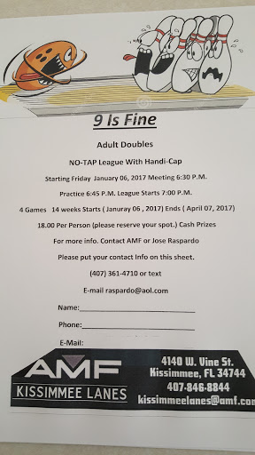 I did my sons 16th birthday here and they were amazing. The food was great and everything was set up before we got there. I totally recommend this place to anyone whos wanting to have a great time. ⭐️⭐️⭐️⭐️⭐️AMF Kissimmee Lane ⭐️⭐️⭐️⭐️⭐️