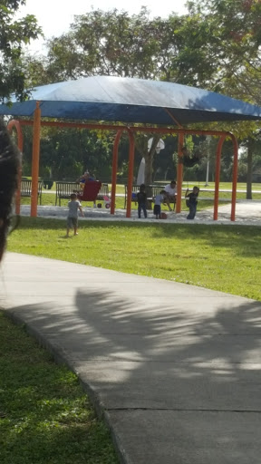 It is a decent local park. It has a huge field and a small play area for the kids. There is a walkway around the park which at night is negligibly lit and a basketball court but that is about it. My main complaints about this park are that there are no organized activities eg. football, soccer, basketball etc., no covered shelter, no place to throw a party or grill. No real tree coverage and on and on. Feels more like a large field than a true park but it is Dade County so we are lucky they didnt just build a strip mall or multi-family housing I guess. Good Try but needs work also known as Funds for improvement.