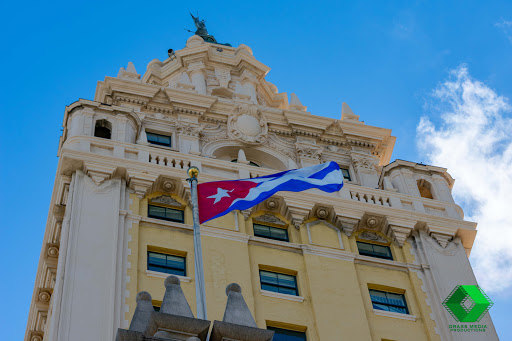 Obviously whomever owns the Tower does not know about Flag Ettiquette. The AMERICAN FLAG should always fly higher than any other flag. Not evenly with the Cuban flag. It is also a law that the American flag be above else.