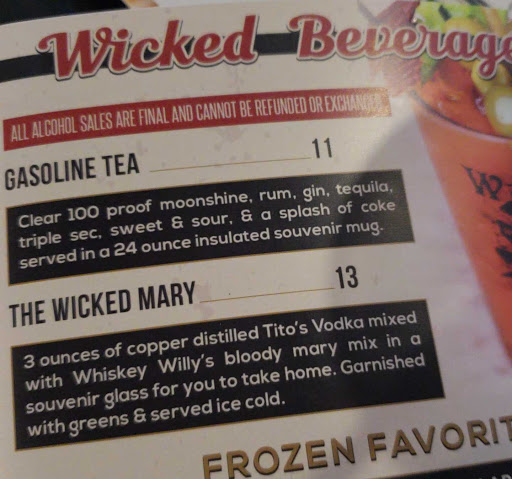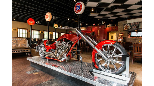 Excellent restaurant. Terrible service. I love the decor and atmosphere of the Wicked Wheel. The burger and fries were top notch. The Anita root beer is very good. I wanted to give this rating 5 stars but my waitress was not that great. I almost had to flag her down for a refill on my drink. I hope they have some kind of team meeting and explain the importance of making sure drinks are filled. The restaurant wasnt even busy whatsoever. Nonetheless it wont stop me from coming back and I still highly recommend this place especially if youre into motorcycles!