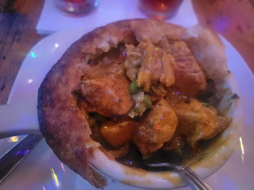 Great pub food menu that doesnt rely on burgers, rather tasty flatbread sandwiches, salads, fondues, combined with a beer n wine lovers label assortment second to none, including over a dozen craft brews on tap. Throw in funky eclectic live music n other amusements, surreal decor, a top notch staff that cares about their customers, knows their spirits. Good times, good vibes, like so many pubs of my youth not seen as much these days.
