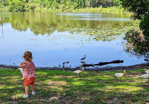 Nicely shaded playground including a tot lot for smaller children. There are 2 ponds for fishing, one of which has a dock/observation area to watch turtles, fish and birds. Plenty of pavillions for parties. The only downside is the bugs, limited parking, and their is a splash ground nazi who spazzes out if your kid has any sort of toy, walks faster than a crawl