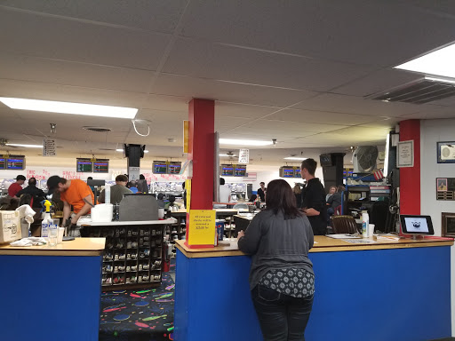 Lots of lanes to bowl on. Pay per game, price includes shoes. Hard to get to if you dont know how. Meridian road is one way streets.