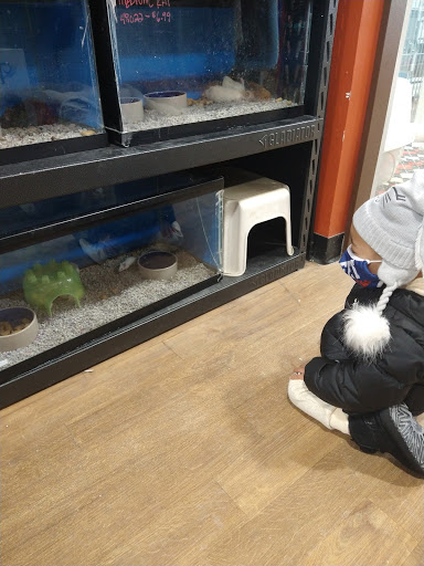 We decided to "stop here" before going to Ikea, and ended up staying for 3 hours and not even going to our intended store. First I should say that we are massive animal people. Very big with reptiles but we own pets of every kind. For Aquarium Adventure, the fish section was beautiful and fun to look around. There was a guy that worked there named Kris that was more than helpful with the reptiles. He talked to us about a couple of the reptiles there and took them out to show us their behaviors. We ended up falling in love with a sailfin dragon. Which we will be going back in a week to pick up after we get the set up together. Petland was great for the socialized animals. I like the fact that customers can pick up and interact with the animals but the risk of spreading diease is so high. There are kids running around holding species after species and never cleaning their hands. Really we had to search for a hand sanitizing station. The animals were all very sweet but I can see us taking a pet home to find that its sick from a transferred disease. Plus some people treat the animals like dirt, there was a young girl that picked up a dwarf hamster, put it into the food dish and then proceeded to throw the hamster a foot in the air and catch it in the dish. No parent to be found and no one working their noticed until we pointed it out. After handling a couple of the animals we found a really cute mini rex bunny. We currently own guinea pigs but have never had experience with a rabbit. Thankfully a guy working there named Ken was kind enough to show us everything we would need from cage to food to treats. We were given a rough estimate on how much it would cost and what to expect in owning a rabbit. Overall the customer service was amazing even when they were visibly understaffed. My largest warning is be careful buying any animals from open cages. Do a full body inspection, check for any abnormalities in breathing or heart beat. Buy at your own risk.