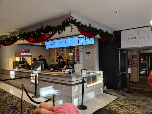 I have been going to The Davis Theater since I was about 7 years old and my early memories of this theater were of how dated and uncomfortable it was. The changes that the current ownership have made to this little local neighborhood theater are about as dramatic as the changes in how movies have advanced. What was a small drab theater room has been transformed into a futuristic sound stage from the future. The clarity of the digital projection is only surpassed by the intensity of the 360* virtual reality sound system that is somehow hidden in the walls, ceiling and floors. These new theaters are beautifully decorated with royal scarlet drapes and new cushy rocking chairs. There is a private theater for private parties, live viewings (like Cubs World Series games, and corporate events that has a pass through to the fully stocked bar at Carbon Arc, the restaurant adjacent to the theater. The bathrooms went from dingy to decadent. The concession stand sells wine, beer and Carmel corn! Yes! Also got to try the food and fare at Carbon Arc. This concept of connected bar and restaurant is genius. Its not the first time I have seen this but it is by far the classiest. There is a sleek vintage style bar (like out of movie!) with a huge selection of beverages including some custom signature drinks like the Fall into Winter (my favorite). Quick eats for those who are seeing a movie (smart), and a full service menu for those who are just coming for a great dinner. We ate Tom Yum fries, eclectic tacos, flatbreads and a chocolate ice cream egg roll. The staff were on point and the bill was so reasonable compared to many of the restaurants in the area. I cant see myself wanting going to any other theater, ever.