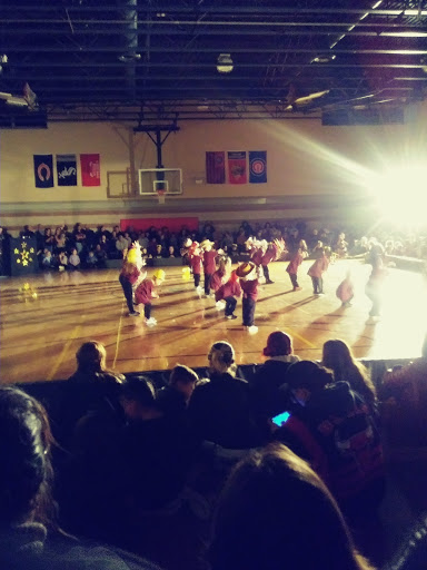 Outdoor pool with kiddie pool. Baseball fields. Gymn.