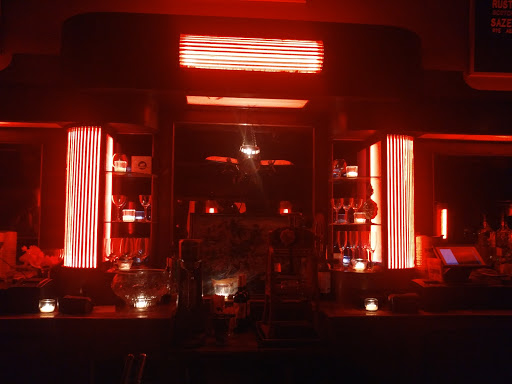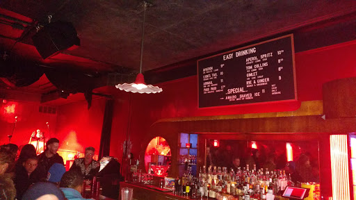 Im a huge fan of this bar. The outside is so deceiving. Once you step through the curtain at the door youre transported to another era. LOVE the ambiance of the red glow and of course the games. Have gone to see the Burlesque show, The Modern Sounds and of course just to hang out. The music switches genres all the time from Cab Calloway and Ertha Kitt to some head banging pure rock! The drinks are strong and awesome and the bartenders really know their stuff. Enjoy your visit!