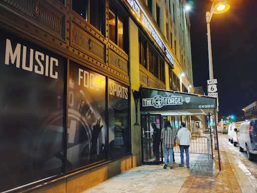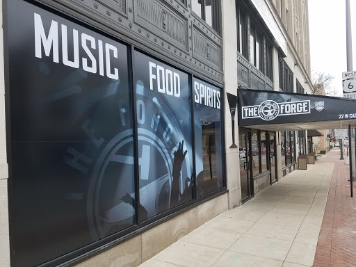 We came to The Forge to see Rockstar Rodeo and Dixie Crush (both country) which is not the typical genre the Forge hosts but they are expanding. I have never been here before it was The Forge but read the owners made some major interior improvements, like moving the staircase away from the side of the stage. I can totally see how this would have been a distraction during a concert. Upon arrival all 4 of us were carded, so dont get mad if youre older, they card everybody as its their policy. I like the main floor bar as it was dark but then lit up more in the back, to give not take away from the concert. Several large TVs are hung to have on a game, but one TV was dedicated as a menu board. We arrived super early so we chose seats upfront. Small round pub tables and stools are your choices. There are not a ton of them, so if youre looking for a table and they are expecting a large turnout, plan on getting there early. Most people stand at concerts and in this case of a country concert, there was a large open area in front of the stage for dancing. Service was good as there were several servers available, all checking up on us. I can see if this place is packed how service might get a bit tricky. We ordered drinks first and I tried to order a mule, but seeing they have only been open for 3 weeks, they didnt have ginger beer yet. Not a deal breaker, as I ordered something else. I heard they plan on also bringing in craft beers on tap. For food, their menu is very simple - a few sandwiches, apps, and salads. Heres what the 4 of us ordered: The Forge (a sub), Fire Fries, the burger, and the chicken sandwich. If you like subs, the Forge was great on a perfect bun, not too soggy, not too dry. The other sub option was the Anvil, (will try next time). The burger was cooked as ordered and was seasoned perfectly. The Fire fries, with Parmesan and chili oil were tasty, although the heat wasnt so extreme where you couldnt enjoy them. The chicken sandwich was seasoned as well. Fries needed some salt, but not a deal breaker. They are open for lunch during the day, so if you just need a place to grab a quick bite, defintiely give it a try. We were given a tour of the 2nd floor upon request, and there is another bar to accommodate the balcony viewers. For certain larger concerts, you will be able to purchase an actual seat upstairs, overlooking the stage, with a little counter for drinks (good to know). We were then shown the Sapphire room on the 2nd floor, that was boooked for a private party that night. The room has a full bar, stage and seating to host all sorts of private parties when smaller concerts are playing at the Forge. For larger concerts, the Sapphire room will be the bands dressing room. There is a separate private entrance off the street, so you never have to go through the Forge at all. Overall, I loved this venue. Small and quaint with great entertainment options and close to my house. Im looking forward to The Forge bringing quality entertainment to the area again and helping revitalize the downtown Joliet area.