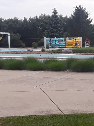 Great place has 2 body slides, 1 tube slide, 1 deep end drop slide, diving board, lazy river, 2 kids splash areas, and large pool. Super clean and kids love it!