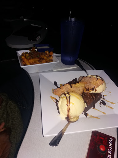 Although my server was nice, she did not ensure I received my food in a timely fashion. She passed by my seat several times without once asking me if I needed anything and without even noticing that I was still waiting on my food for the last 45 minutes. I understand it is dark in the theater and there are hundreds of people and its hard to keep track of who ordered, but come on, you cant drop by and ask if I need anything so I can talk to you about not getting my food for the last 45 minutes? Furthermore, I pressed the red button twice and two additional servers ensured me my food would be come and it never did, the second girl, a fat woman, brushed me off rudely and told me it was coming. When my food did arrive, the guy who brought it didnt even check my seat, he asked one person, two seats down from me if it was their food (even though they had food in front of them) and didnt even bother to use his peripheral vision to see that I didnt have any food at my desk. He left before I could even process what the hell he was doing. Finally, my server came back and instead of asking me if I needed anything, asks my coworker next to me if she needed anything even though she got her food and my coworker had to tell her, that my food never arrived. Even though my server personally delivered food to my desk and said sorry, I couldnt even concentrate on the movie because for the first 45 minutes I had to flag down two people to inquire about my food. Furthermore, the movie didnt even start on time, it started half hour later, and I ended up leaving late. All bathrooms were congested and I had to piss at the restaurant across the street. The drinks I ordered before the movie didnt even get me buzzed because they were watered down drinks. When I finally got my food, the chicken and fries were cold on the inside and the way that the waiter placed the sauce on my plate when she placed my food on the desk, some of the sauce flew off and landed on my hoodie. Im still washing my hoodie to get the honey barbeque off. I will never return to this place. After spending 40 dollars in one movie, I feel it was the worst movie experience Ive ever had in my life.