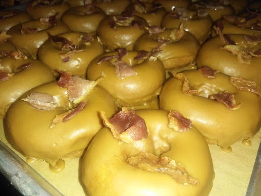The Donut Whole is probably one of the coolest places in town to hang out... and eat donuts. Besides having a huge chicken on top of the building (that in itself is plenty a reason to be dubbed "the coolest hangout"), they have the most fantastic buttermilk donuts in the world. The selection is huge and delicious: the famous Maple Bacon, Old School, Homer J or the Sunshine Citrus Crunch... they are all fantastic and you cant go wrong with any of their flavors. They also carry unique pop that is made with real sugar (they even have the large glass bottled Coke made with real sugar), as well as kick ass, local coffee and tea (you gotta try the boba tea). If they couldnt get any cooler, they have bands mulitiple times a week jam and local artists display their works. Pretty neat stuff. Also, if this hasnt convinced you to check them out, at least come in and look at their bathroom. Its pretty trippy.