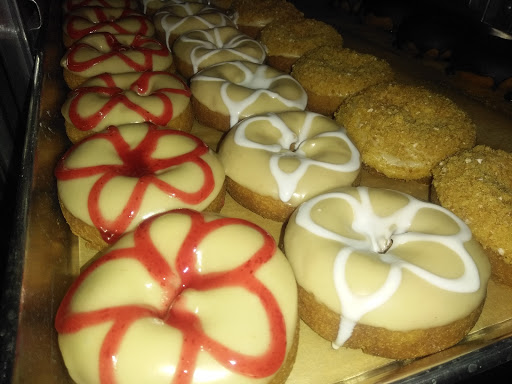 Nothing to rave about. The reviews that go on and on about how great this place is must be friends of the owner. The donuts are on trays which are on bread racks. There was nothing protecting them from the army of flies that were buzzing around. The staff was less than polite, but not completely rude. The place looked dirty and either the air conditioning was broken or their overpriced donuts arent paying the bills. I ordered the key lime cheesecake, which was moist, but was entirely wrapped in the paper hand gasket and pulled all the "lime" flavoring off when I removed it. This would be considered a high end donut shop.... in Tijuana.