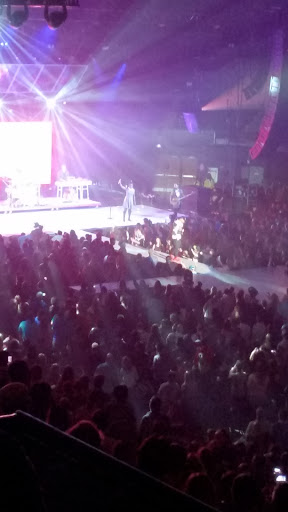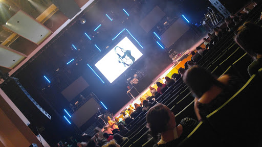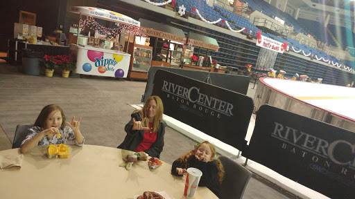 The venue is large. They must have redid the seats since the last time i went. Seats are so small. You have no leg room. No one can even pass in front of you to go to the bathroom with the whole row of people getting up. Hot. The food locations inside are the best things available. Lines were really slow though for food. River center needs to do better. I went to see wwe live. The show was great but being cramped in a supersmall seat for 4 hrs was not fun