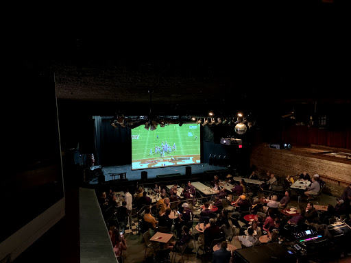 Large dark theatre space with bar. Good for public events. Smells like beer, so not particularly child friendly.