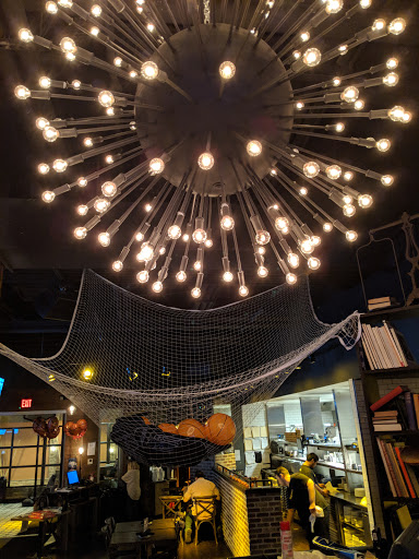 The newest outpost of the DC regional modern bowling hall meets bar / restaurant. Nice looking space, its within Montgomery Mall in North Bethesda. Food is decent to good in the few of times Ive been there is a mix of sandwiches, pizza, entrees and starters. For example, the burger lacks proper seasoning for the meat itself, although the rest of the condiments & other additions looked pleasing. Deviled Eggs starter contains bacon (BACON!) but the kitchen additionally salts the dish, so the combination of bacon and an occasional heavy handed kitchen can make for the dish to be too salty. Drinks are currently a mix of not-too-interesting beer list, along with some cocktails and wine (Im told that there with to improve the beer list with not interesting selections). Friendly staff here. Bowling lanes are modern with large TVs that can show a mix of programming -- I spied some kid shows at certain lanes. Looks to be ideal for groups.