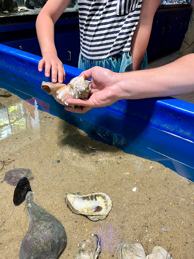 There are about ten fish tanks total. It is a hands on experience though, so your child gets to tocuh the horseshoe crab and the oysters shell, that was cool for my 5 year old. His favorite part though, was the giant sand box right outside.