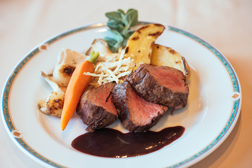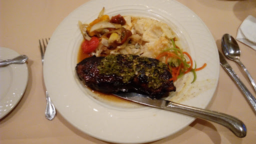 Excellent food and very courteous service; upscale crowd and clean facilities; beautiful view of golf course from inside and balcony; also adjacent to pool and tennis courts