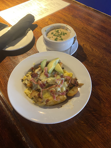 I love the atmosphere and the food is unique. Water view, outdoor seating in warm weather, and great staff. I love that everything on the menu is a typical sea-side feast but with a twist. For example, the burger is served with a mango salsa made in-house. Cozy speakeasy feel with a player piano! They do murder mysteries there too. Love the variety!