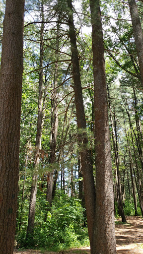 Woods. Tall trees, trails, and they have a trail workout course.