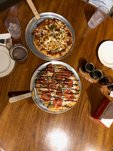 Great wine and pizza. Got a sampler board with several wines for $7 and was really surprised. Try the cheese bread and BBQ pizza.
