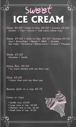 Great prices... Batting cage balls($1.00 for 20 balls). Ice cream with cones 1.25 n $5 large bucket balls or $5 to walk 9 holes. Love it