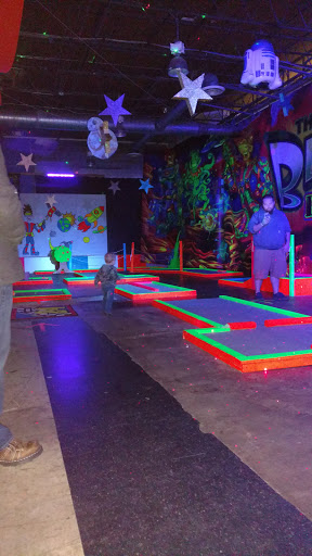 Let the kids run around like crazy. Bunch of blow up play areas. Slides, mazes, climbing. They also have a few coin games, a blacklight putt putt.
