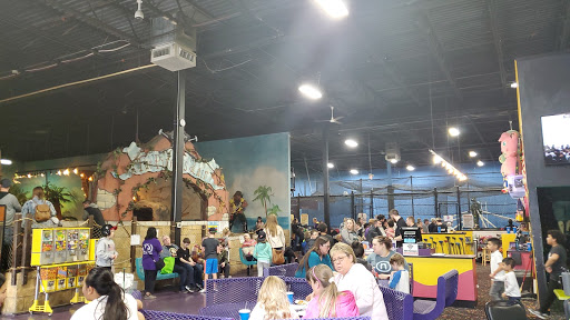 I was just here and I am very dissapointed in the staff. I was on the Xtreme Trampoline and small children were swearing, flicking people off, and doing innapropriate gestures with their hands and mouths. One threw a ball at my friends butt and winked at her, which is sexual harassment. They also had made it a point to pelt us in the face with balls whenever they were able. I dont think their parents were around, but this is something that should be controlled by the staff. I will not be coming back here, and I will be sure that every parent I know will take their business elsewhere. Please reconsider your rules and staff regulations for the safety of others. The tables were dirty as well. It appeared that there was no effort to clean the spilled drinks, half earen good, and chunks of hair off the seating area. It was pretty disgusting and unhealthy.