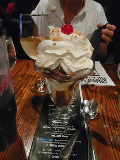 It was my wifes birthday. We were a walk up for the comedy show and the box office staff was great, the hostess that checked us in was also friendly. She gave us a menu and said we could order drinks, dessert, and appetizers since we werent getting dinner and we would have both 480. We were very excited to get a bottle of wine, chicken appitizers and the caramel cheesecake but even with attempting to get the servers attention he never stopped at our table in the 2 hours and 20 minutes we were there and we had to ask the busser to get us some water halfway through as we couldnt get the server to stop. The actual comedy show was decent, certainly better towards the end but the poor (non-existent) service certainly made the whole experience not fun and made a special day not so special.