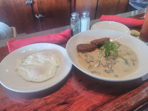 Tried this place for breakfast. Id heard good things about it, and being a DDD restaurant made it one I knew I had to go to eventually. The breakfast selection is just about the perfect size: enough choices to find something you will like, but not so many you get overwhelmed. Portions are relatively large, but not humongous. Both my wifes breakfast and mine were outstanding, although I think hers was maybe a little better than mine. The coffee was very good (strong the way we like it), and they have a few different bloody marys on the menu. I had the BLB bloody, and its a very good traditional bloody. Ill also say that its rare to see a place where the staff so obviously enjoys their jobs. Refreshing. I plan to go back again to try them for dinner, and possibly bowling or the theater which is attached.