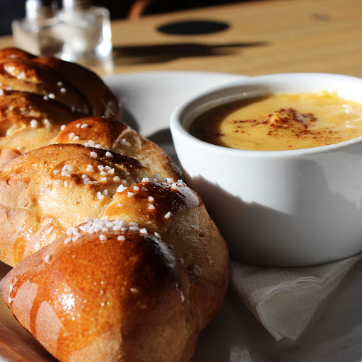 Amazing brunch spot! Everything that Ive ordered here is always amazing. I so miss their spinach and artichoke dip, please bring it back :( All the servers are very friendly, and knowledgeable. BEST BLOODY MARY Ive had! I actually used to hate them until I tried one from here, and now I cant get over how no where else seems to compare. The only complaint I think I could ever have is that there is always a long wait on the weekends, but you cant blame them its a high demand brunch location, and you can always watch people play old school bowling while you wait!