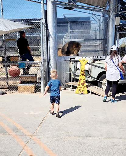 The volunteers are really awesome. They tell you a lot about the different lions and their personalities. When we were there they were feeding a few of the lions so that theyll move around. I read that lions can sleep up to 20 hours a day so its rare to moving, jumping, and standing to get meat. The lions have always been here while the MGM had a lion exhibit, but now that that has closed the lions stay here. They have a 3 year old giraffe named Ozzie as well and the volunteer the day we went gave us a ton of info abut the only giraffe in Nevada. We saw him paint a few strokes in a small canvas as well. We probably spent about 45 minutes, but it was worth the $50 or so for our family. They also have some tropical birds, emus, and ostriches.
