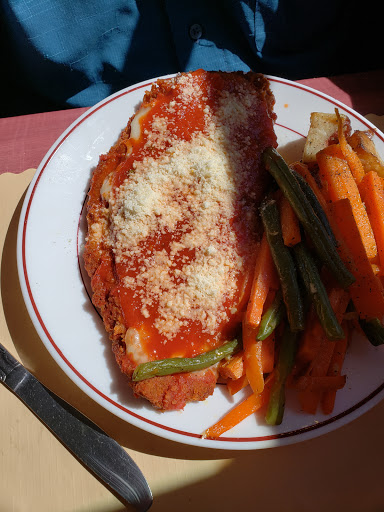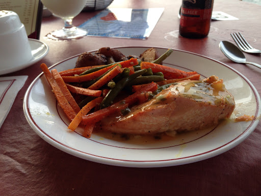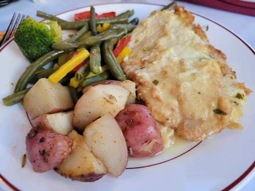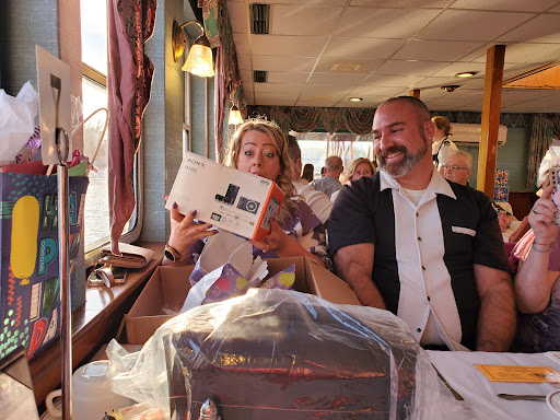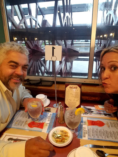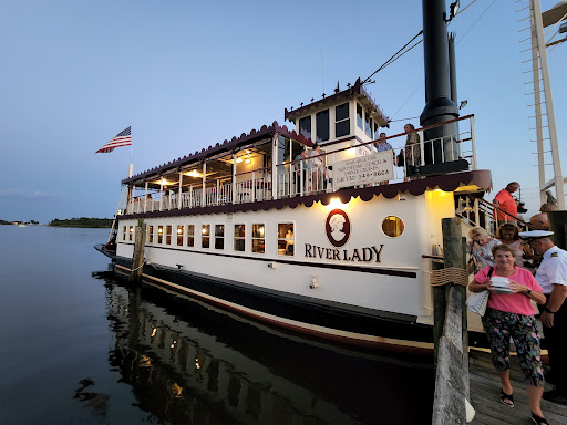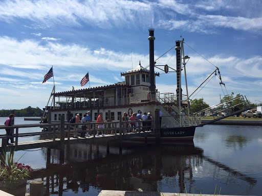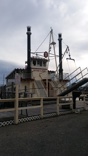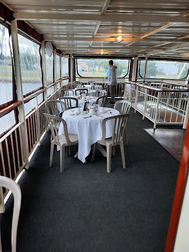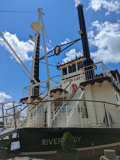 Cruising away on a Monday afternoon. My family and I (group of 3), knew we were going to have a rare Monday all together and decided to do something together. We have always wanted to take the River Lady cruise, so I went online and bought tickets. Being interested in history, we decided on the Historical Lunch Cruise. Upon arriving we parked in a lot not far, maybe 100ft or so, from the dock. The lot was uncrowded at the time, 10:20am, and very full when we returned around 1:30pm. There is a fee to park and you need to use the machine on the corner to purchase your space #. It’s fairly inexpensive at 75 cents an hour. We arrived at the River Lady and were greeted by the captain. He promptly gave us our seating assignment and directions. In our opinion, we were seated in one of 4 tables that are in the aisle way of people coming and going from the main door. It wasn’t a bad table, but the noise from the bar did overtake our conversation a few times. It was also impossible to see out the other side of the boat because the bar area was in-between. I’d recommend asking for a table more near the paddle wheel if possible. The captain greeted us all, gave a short safety speech, and we were underway. The narration of the historical sites along the way was short and sweet, enough to give you the information and leave you enough time to discuss over things. The main seating area of the cabin was air-conditioned. The upper deck was open air, but they did have roll down clear windows that zipped together if the weather turned. The food was good, we ordered the chicken parmesan and the chicken marsala. Both were cooked well and served hot. Everyone got the same salad, sides and dessert. Water and sodas (not in the souvenir cup) were included, but unfortunately not kept refilled. The service was okay, but not great. They seemed rushed and confused at times, tossing my salad across the table hard enough for the dressing to spill out and again, drinks were only refilled once in the 2.5 hours. However, their great attitude during the entire trip really made it easy to forgive the other things. Alcoholic and Non-alcoholic specialty drinks are available and looked great. Overall, we enjoyed ourselves, learned a bit of history, and had an enjoyable meal. Our favorite part was being able to go up to the top deck after the meal and really enjoy the views.