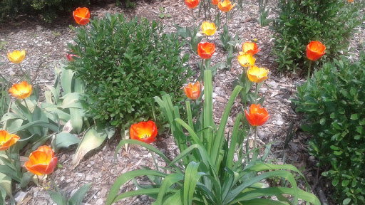 Nice stroll. Flowers. Trees. Grass.