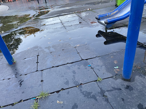If youre a skater who lives in the area this park is good for a flat ground sesh, game of skate and chilling. Its also a cool spot for non skaters a.k.a pedestrians. They never complain about us skating and we never complain about them sitting, chatting, or instagramming here. Theres a playground for the kids and a sprinkler when it gets really hot. It actually amazes me that skaters arent harassed here.