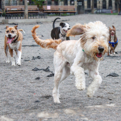 Has two dog runs (one for large dogs and one for small dogs), but theyre dirt not grass and pretty gross. The water fountain has rarely been working in the large dog run too. Otherwise its nice to have a park in the area. Can be a bit creepy after dark.