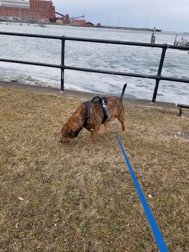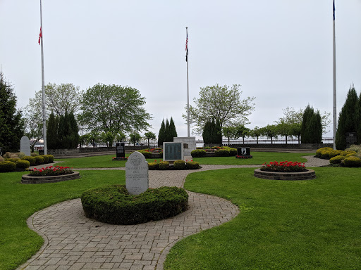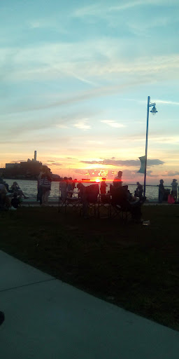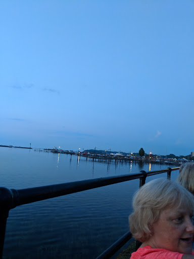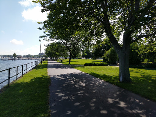 Nice water front park with on street parking, a memorial, Indian chief carving and benches and picnic tables to sit at.